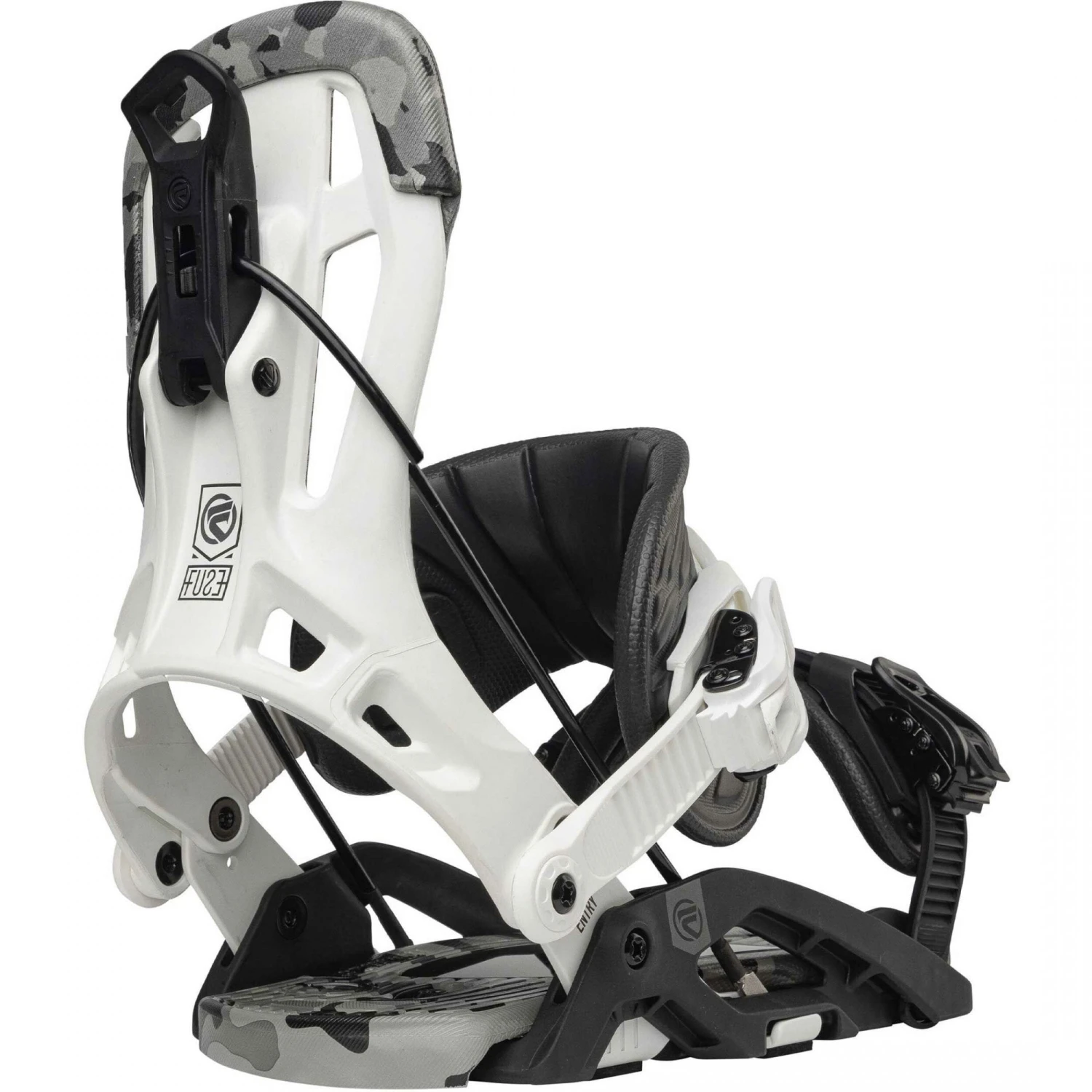 ‘Fusion ExoKush’ straps are thick and mega comfortable, with a single-piece design that maximises the rear-entry convenience and adds useful support across your midfoot. Entry and exit is super quick with the help of ActiveStrap Tech, which pops the whole footstrap up slightly as soon as you recline the hiback to create a bigger space for your boot.